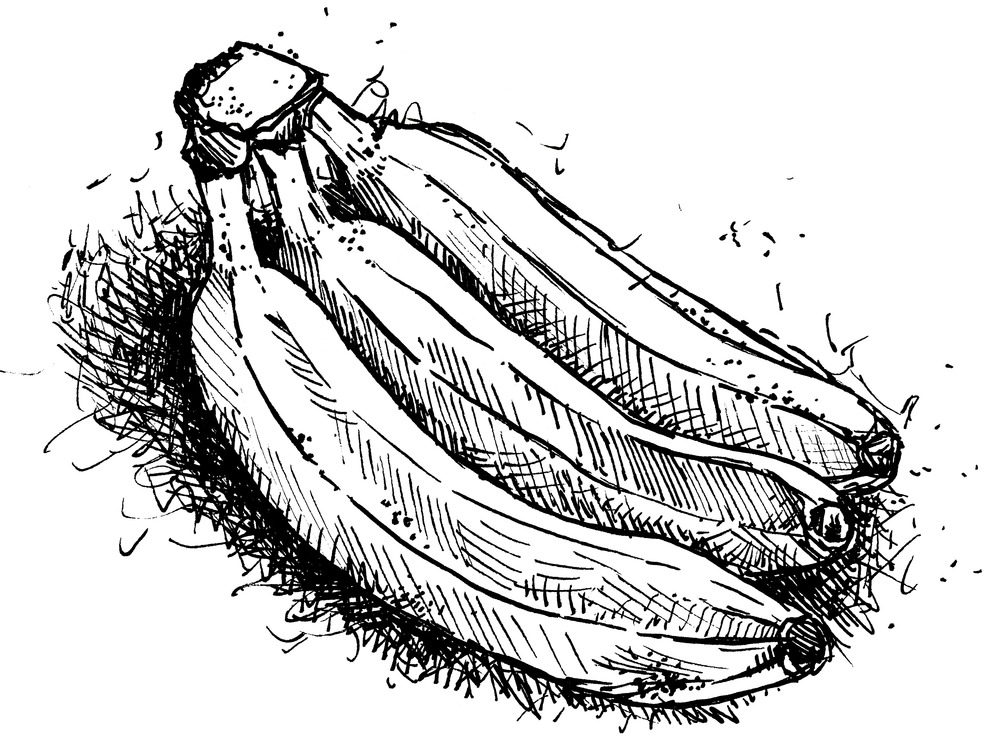 Sketchy bananas. As in, a sketch of bananas. With shade. There is nothing particularly suspicious about these bananas. Except that perhaps they aren't yellow.