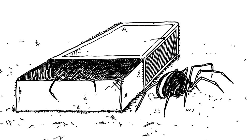 Matchbox, spiders, mystery. The perfect illustration to accompany a story featuring a matchbox full of spiders. Or any other matchbox/spider-related application you have in mind.